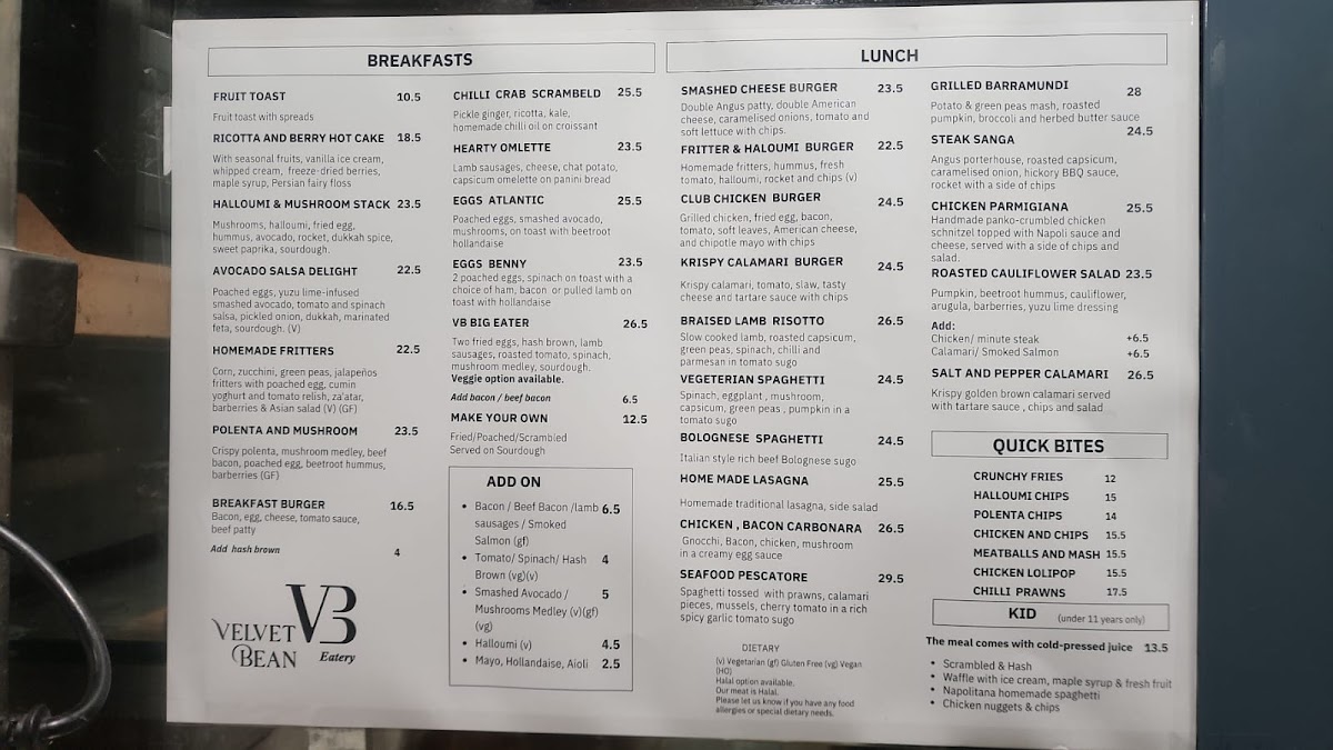 Velvet Bean | Albert Road Cafe Menu